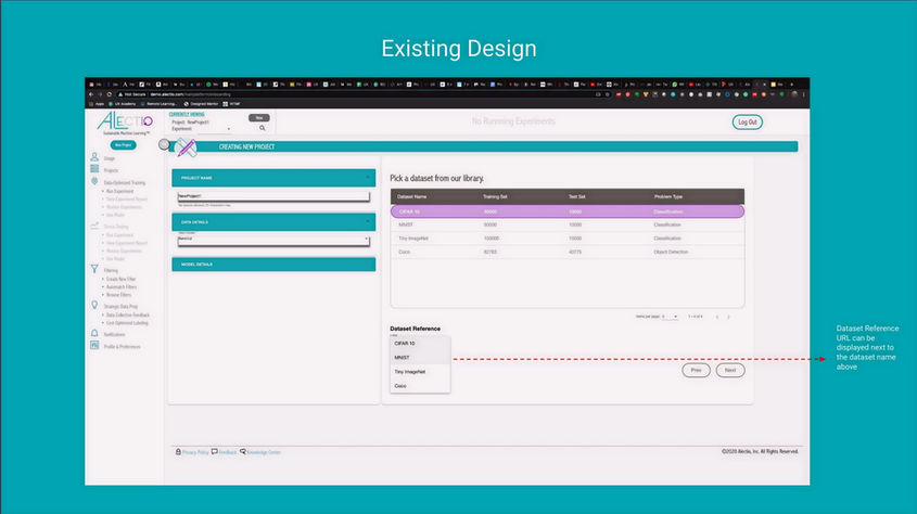 Alectio supports sustainable ML by helping teams prioritize data quality over quantity—reducing resource consumption and cost. I worked on simplifying project onboarding and improving navigation hierarchy so ML scientists and engineers could start projects faster and feel oriented throughout setup.